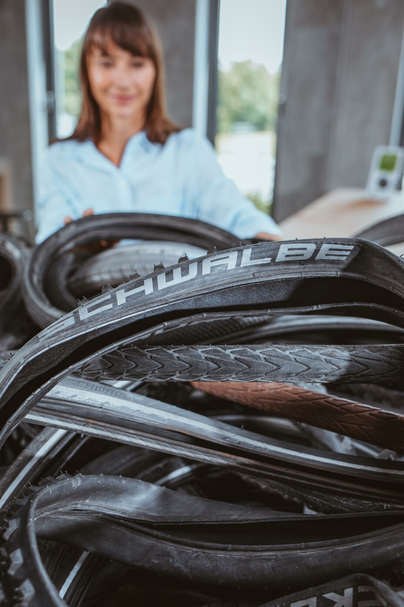 Gemeinsam mit unserem Partner Schwalbe recyceln wir deine alten Fahrradreifen und Schläuche.